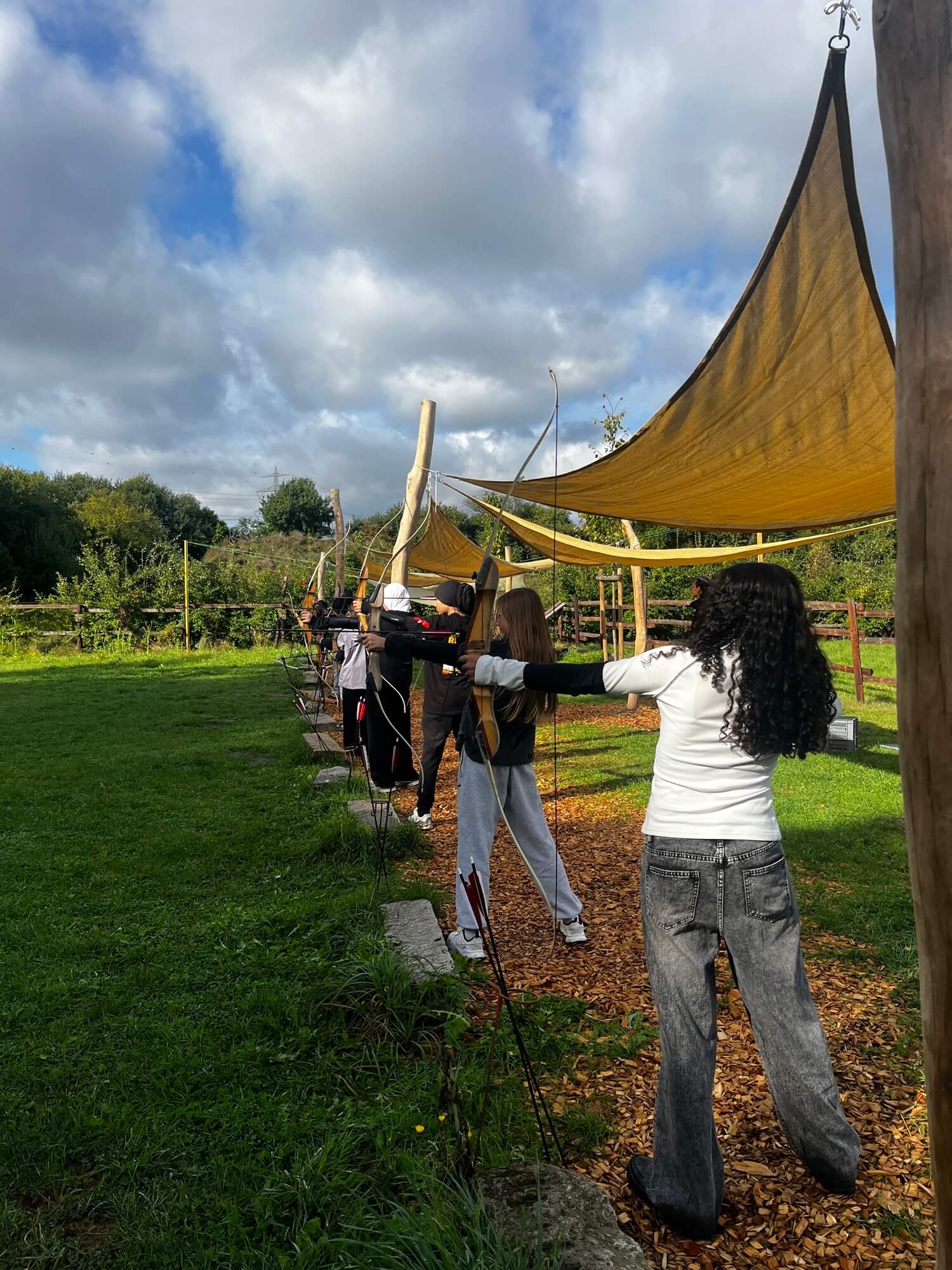 Schüler beim Bogenschießen.