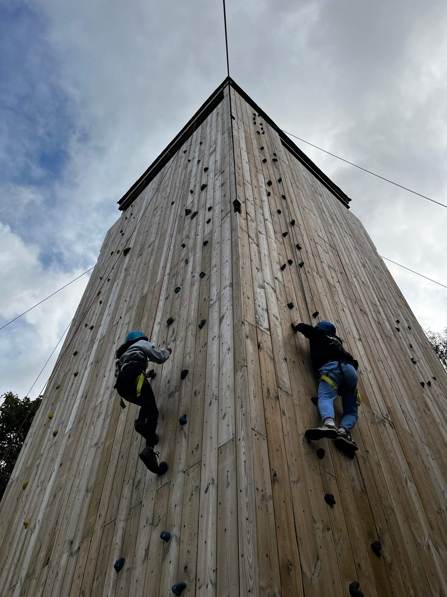 Schüler am Kletterturm.