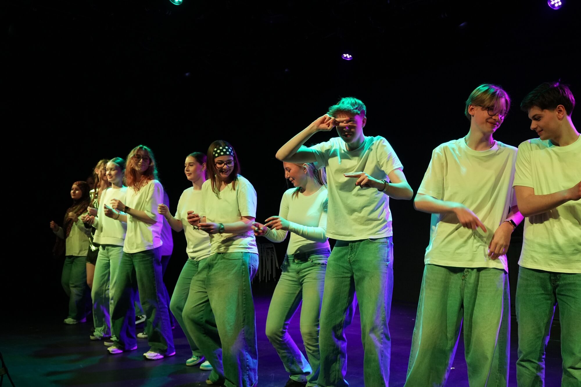 Ein besonderer Schwerpunkt lag auf den choreografischen Elementen, die gemeinsam mit der Choreografin Winett Ardouin entwickelt wurden. Bewegung, Körperausdruck und Rhythmus wurden gezielt eingesetzt und ergänzten die Inszenierung um eine weitere Ausdrucksebene.